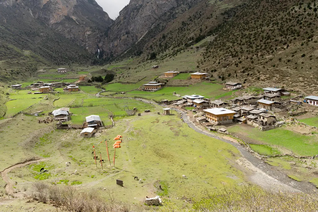 Trek past remote villages and climb to Yeli La Pass (4,930m), the highest point of the trek, with stunning sights of Mount Jomolhari, Gangchhenta, and Masagang. Long descent to Shodu campsite.