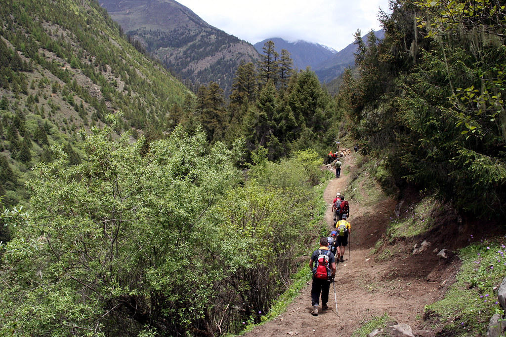 Trek: 5 hrs, 10 km, descend through forest and yak pastures